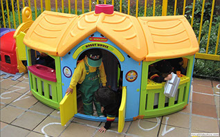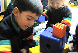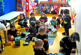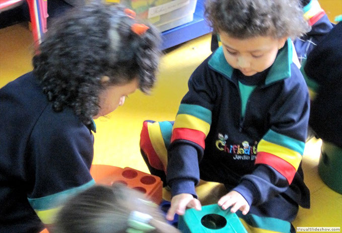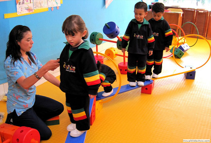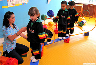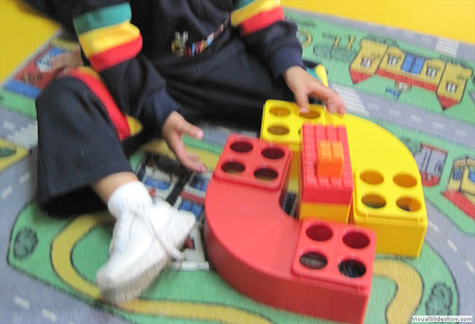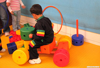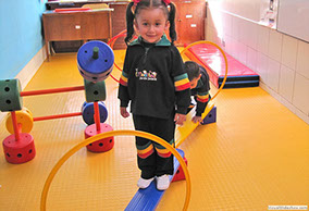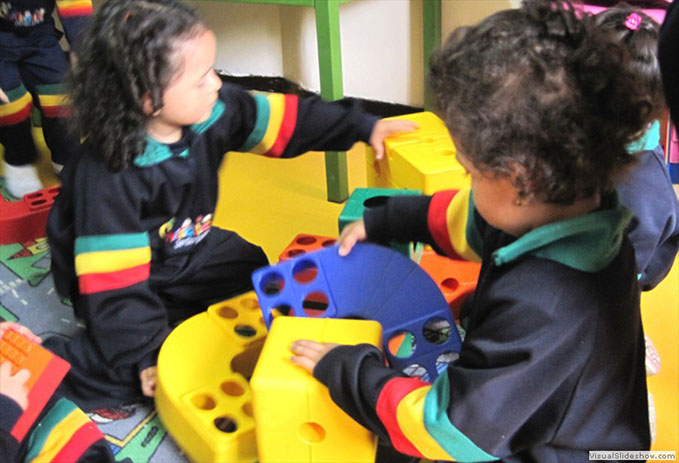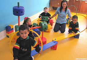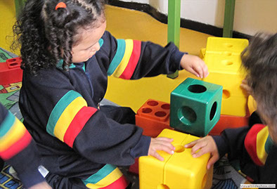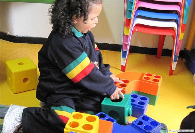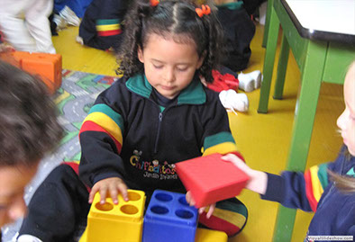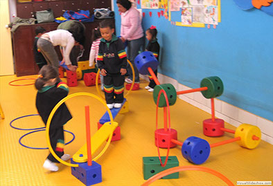 Puede correr, gritar, saltar cuerdas, construir con cubos de plástico y madera.