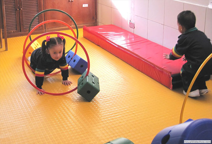 Es un lugar especial para el niño, un lugar para el movimiento, para el placer del juego en todas sus expresiones, tiene la posibilidad de: balancearse, ejercitarse en el suelo, deslizarse sobre los planos inclinados, lanzarse sobre cojines.