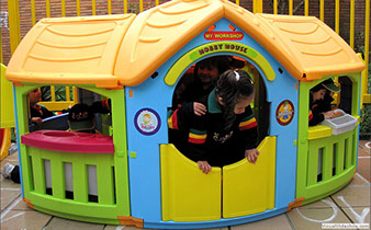 Parque privado, pista de triciclos, piscina de pelotas y zonas verdes.
